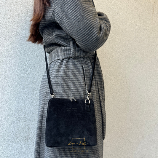 Small Suede Timeless Chic Italian Suede Clutch/Shoulder/Crossbody Bag