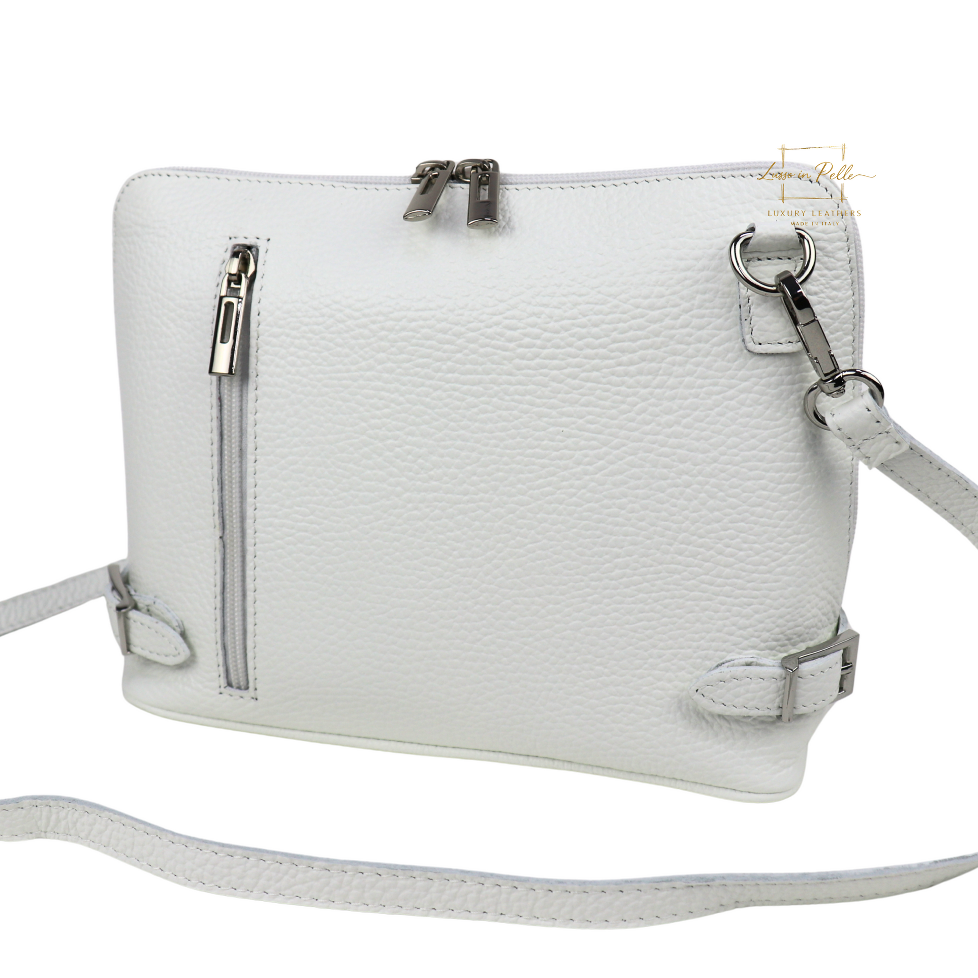 Rectangular Structured Italian Grain Leather Crossbody Bag with Adjustable Straps