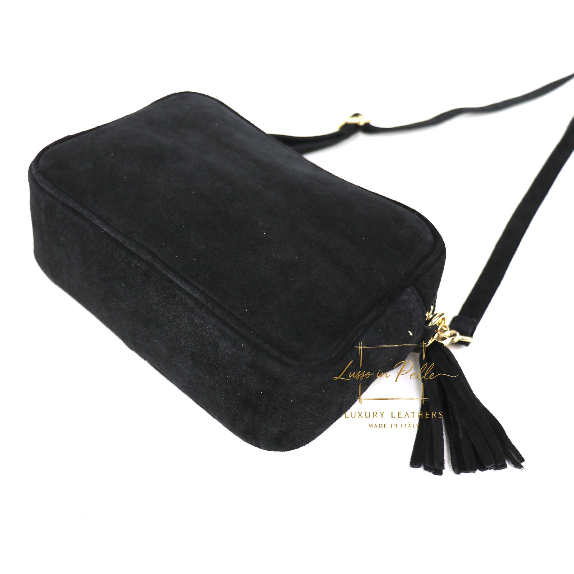 Suede Box Bag with Gold Hardware and Adjustable & Detachable Straps